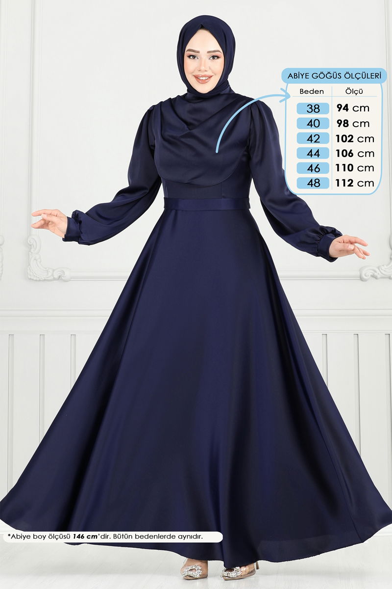 The Draped Satin Gown is an elegantly designed modest wear suitable for all seasons. This gown must be dry cleaned only and is made from high-quality satin fabric. It features a semi-high collar and a zip at the back, offering a blend of elegance and comfort with its unlined structure. The included belt, which can be optionally removed, adds a touch of refinement, with sewn ends and an unstitched middle part for a ripple-free fit. Finished with draped details and precise stitching, this gown is perfect for making a statement on special occasions.Evening Dress SIZE DIMENSIONS (CM)Size Chest Length 38 94 146 40 98 146 42 102 146 44 106 146 46 110 146 48 112 146 Weight (Kg):0.46 -