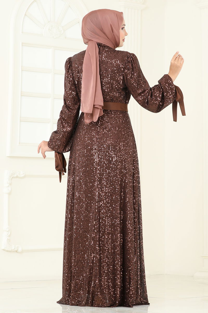 يوجد زر يمكن استخدامه من الخلف. المنتج لديه ياقة بيضوية. مبطنة. المنتج به سحاب في جزء من الخلف. تفاصيل الترتر اللامع تم خياطته المنتج يحتوي على حزام خصر مُخاط. الحزام متضمن، ،يمكن استخدامها حسب الرغبة مع حزام بأربطة. قد يكون هناك اختلاف في الدرجة اللونية في المنتج بسبب التقاط الصور الفوتوغرافية.