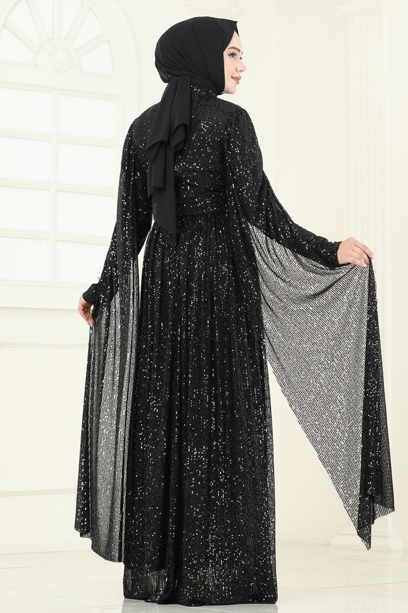 المنتج لديه ياقة دائرية. مبطنة. المنتج به سحاب في جزء من الخلف. المنتج يحتوي على حزام خصر مطاطي. تفاصيل الترتر اللامع تم خياطته يتم خياطة الرداء على المنتج. قد يكون هناك اختلاف في الدرجة اللونية في المنتج بسبب التقاط الصور الفوتوغرافية.