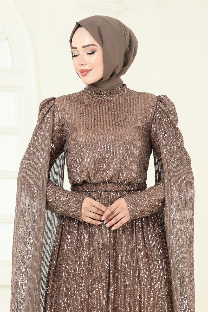 المنتج لديه ياقة دائرية. مبطنة. المنتج به سحاب في جزء من الخلف. المنتج يحتوي على حزام خصر مطاطي. تفاصيل الترتر اللامع تم خياطته يتم خياطة الرداء على المنتج. قد يكون هناك اختلاف في الدرجة اللونية في المنتج بسبب التقاط الصور الفوتوغرافية.