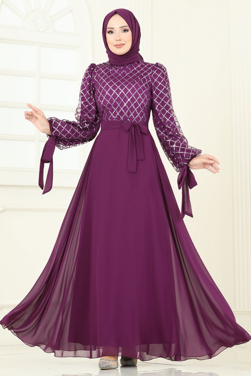 ميزة النسيج : مصنوع من قماش شيفون فضي من الدرجة الأولى.