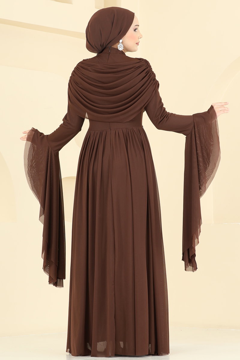 المنتج لديه ياقة نصف بيضوية. مبطنة. المنتج به سحاب في جزء من الخلف. يتم لصق الحجارة. يعتبر الشال ضمن المنتج، ولا يجوز استخدامه اختياريا. قد يكون هناك اختلاف في الدرجة اللونية في المنتج بسبب التقاط الصور الفوتوغرافية.
