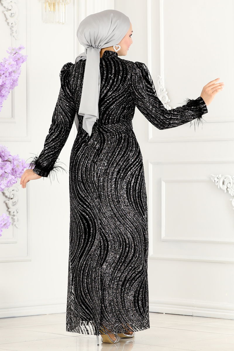 المنتج لديه ياقة بيضوية. مبطنة. المنتج به سحاب في جزء من الخلف. تم صناعة القماش من القطع اللامعة . قد تتساقط مع الاستخدام يتم خياطة ريش الأوتريش في المنتج. قد يكون هناك اختلاف في الدرجة اللونية في المنتج بسبب التقاط الصور الفوتوغرافية.