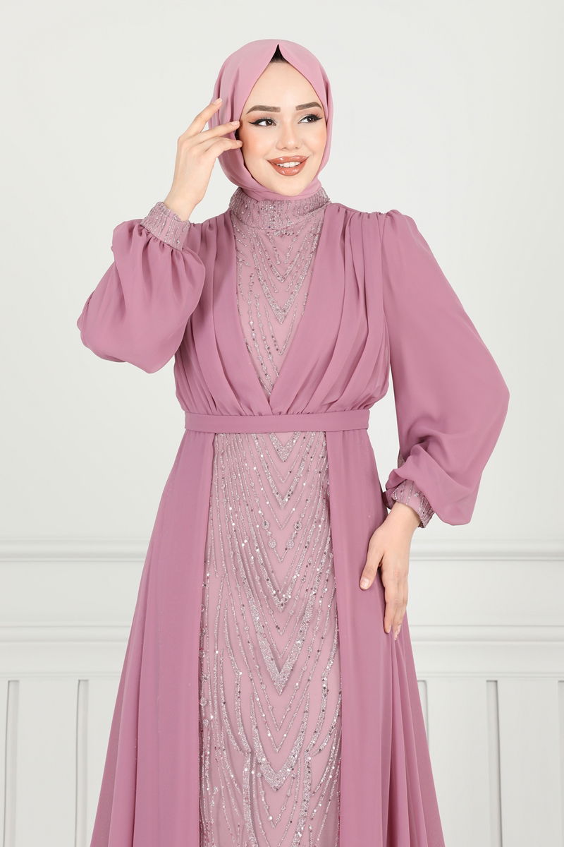 فستان سهرة وردي 6630YG95-MS