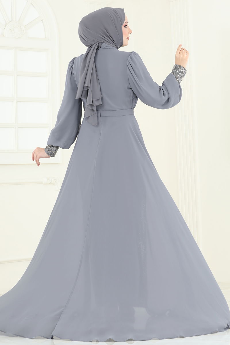 المنتج لديه ياقة بيضوية. مبطنة. المنتج به سحاب في جزء من الخلف. المنتج يحتوي على حزام خصر مُخاط. رداء شيفون مخيط بتفاصيل من الشيفون. تفاصيل الترتر اللامع تم خياطته الخرز تم وضعه بطريقة اللاصق قد يكون هناك اختلاف في الدرجة اللونية في المنتج بسبب التقاط الصور الفوتوغرافية.