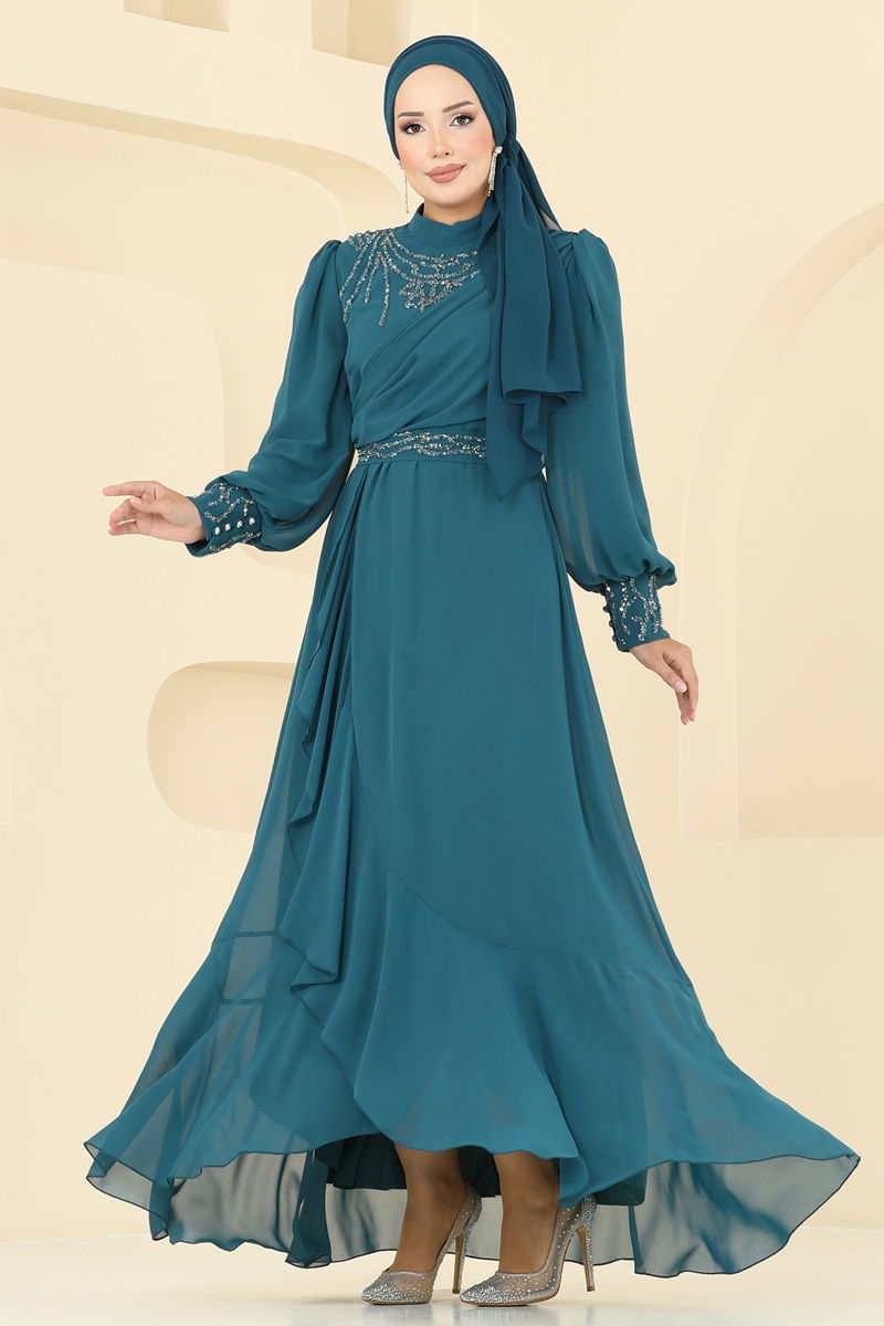 فستان سهرة بترولي 8088AB368-MS