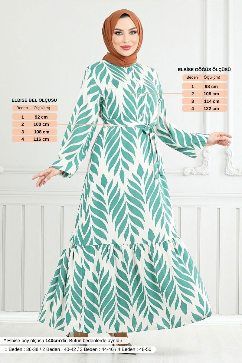 Feuille À Motifs Hijab Robe Numéro de pièce 827OZR1047-M Menthe