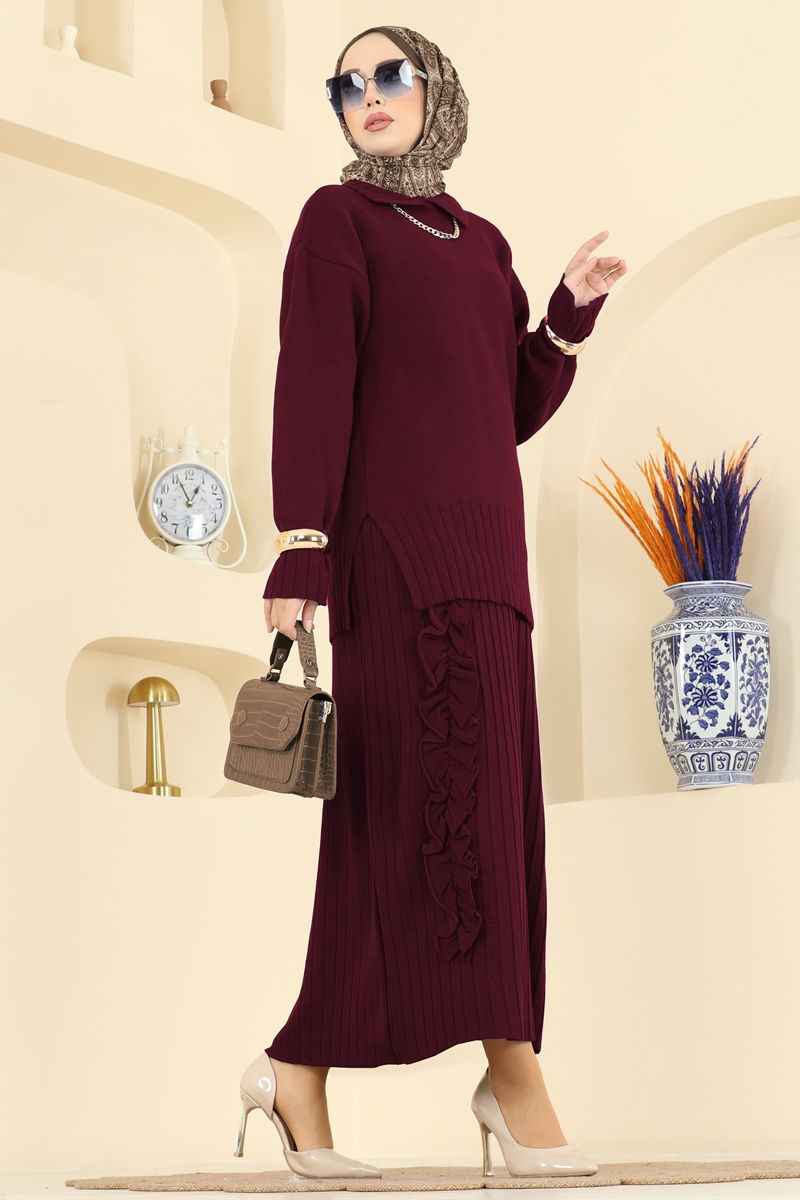 Fırfır Detaylı Triko Takım 2773AYD574-MS Bordo
