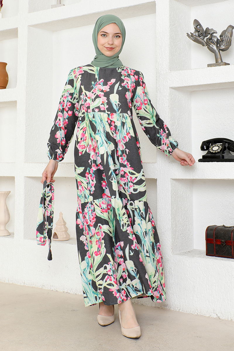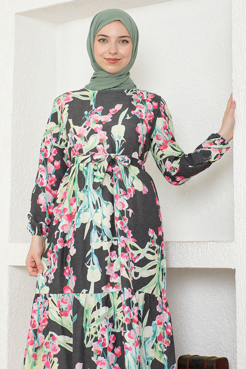 Robe florale Anthracite Caractéristique du tissu: Le produit est composé d'un demi-tissu en lin lycra.Longueur du produit: 132 Cmür Caractéristique: C'est un produit de la nouvelle saison. Le produit est un produit de saison estivale. Puisqu'il est à moitié lycra, il est extrêmement confortable à utiliser. Un vélo est un collier. Les poignets des manches sont caoutchoutés. Il a un seul bouton actif à l'arrière. La ceinture est mobile et est envoyée avec le produit. Instructions de lavage: Le lavage doit être effectué à 30 degrés. Dimensions du mannequin Taille: 1,67 (Sans chaussures) Poitrine: 80Bel: 68Basen: 96le produit sur l'homme est une taille 38.REMARQUE: Le moule du produit est un moule individuel, il est recommandé de commander votre propre taille. Il peut y avoir de légères différences de tons dans les couleurs des produits en raison des photos conceptuelles.Tags