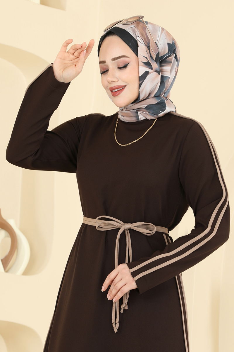 Garnili Dabıl Elbise 2781SL432-MS Acı Kahve