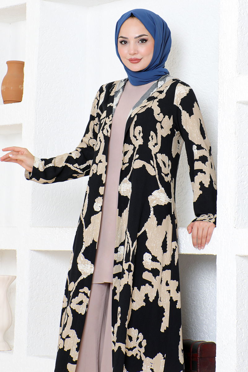 • Desenli Üçlü Viskon Takım Siyah&Vizyon