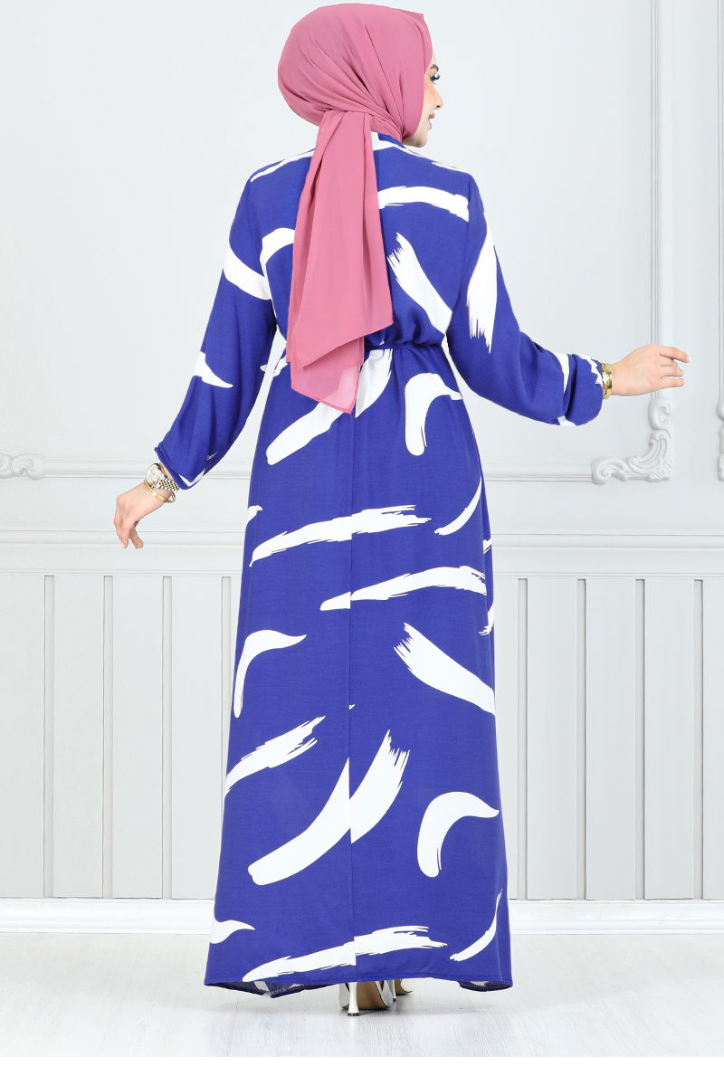• Desenli Viskon Elbise Saks