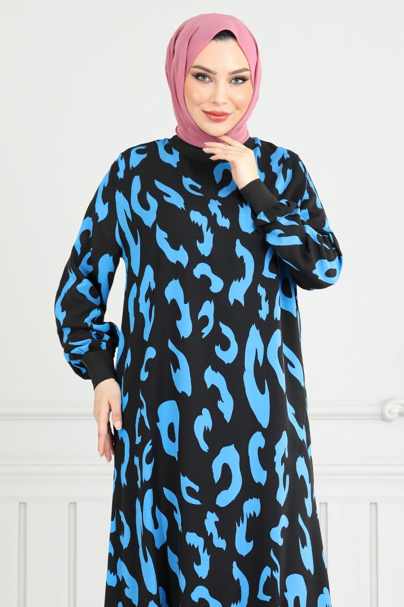 Desenli Viskon Elbise 820OZR1047-M İndigo