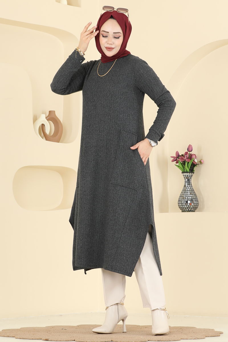 Geniş Cepli Balıksırtı Tunik 24009UKB139-MS Antrasit