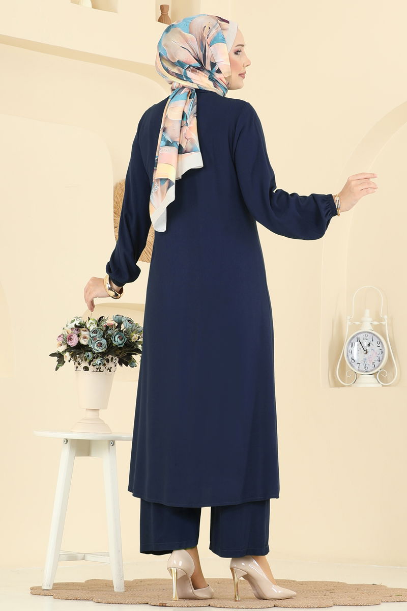 Ürün Detayları : Moda dünyasına uygun yeni sezon tesettür ürünü. Gömlek tipi yaka mevcut. Gizli düğmeleri bulunmaktadır. Astarı yoktur. Pantolonun beli lastiklidir. Kol ucu lastiklidir.Ürün renkleri çekim koşullarına bağlı olarak değişiklik gösterebilir.