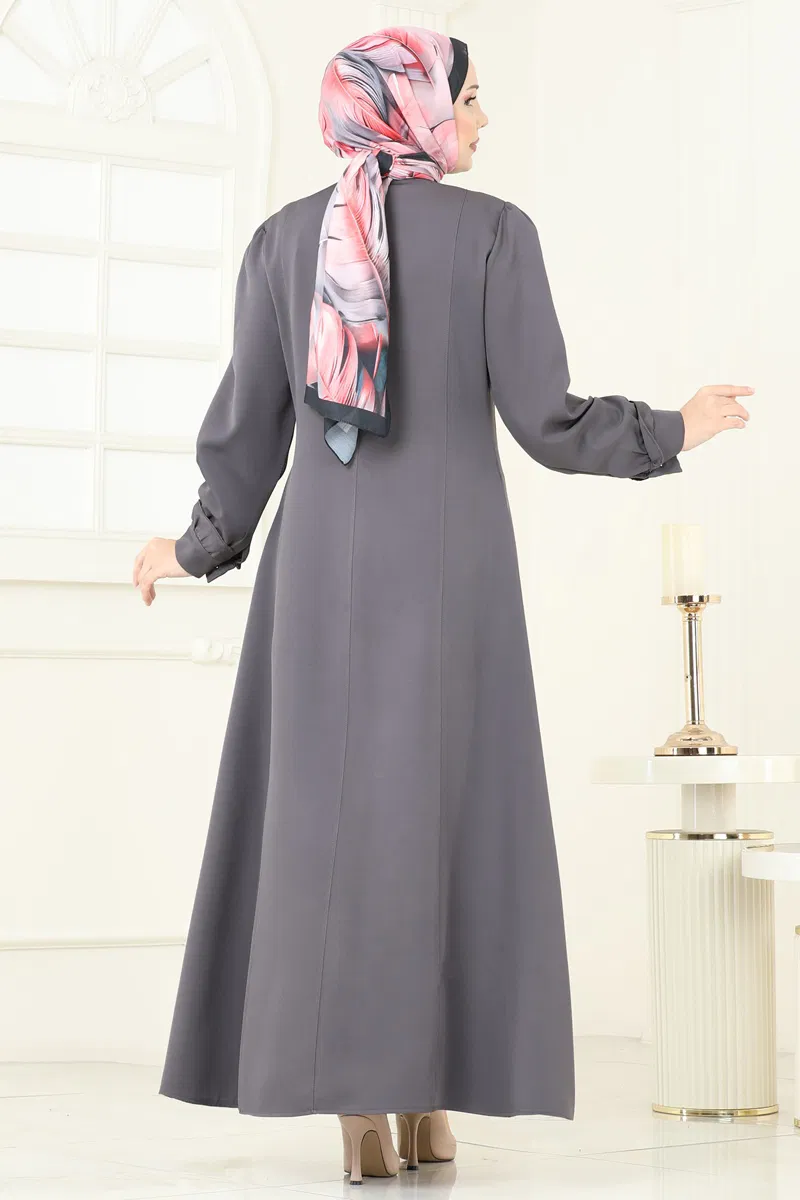 Gizli Fermuarlı Dabıl Ferace PL9191-MS Antrasit