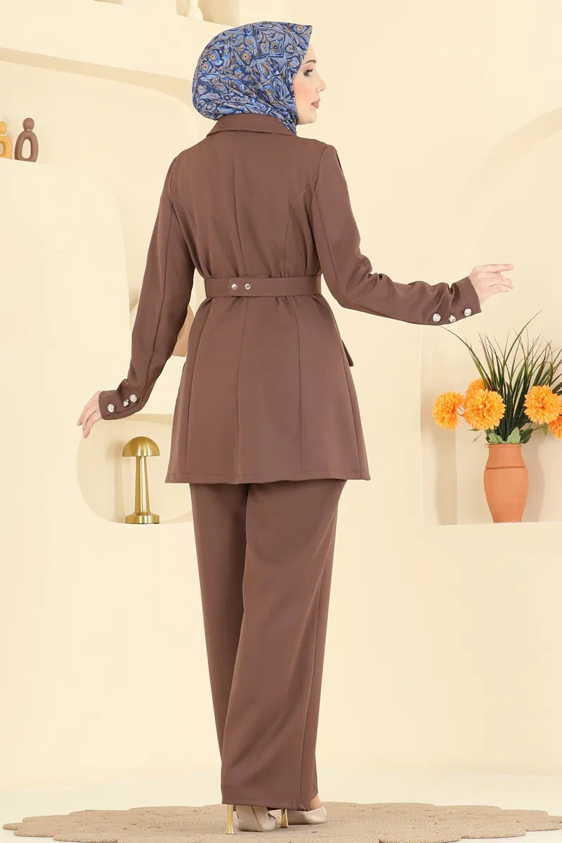 Kahverengi Gold Aksesuarlı Dabıl Takım