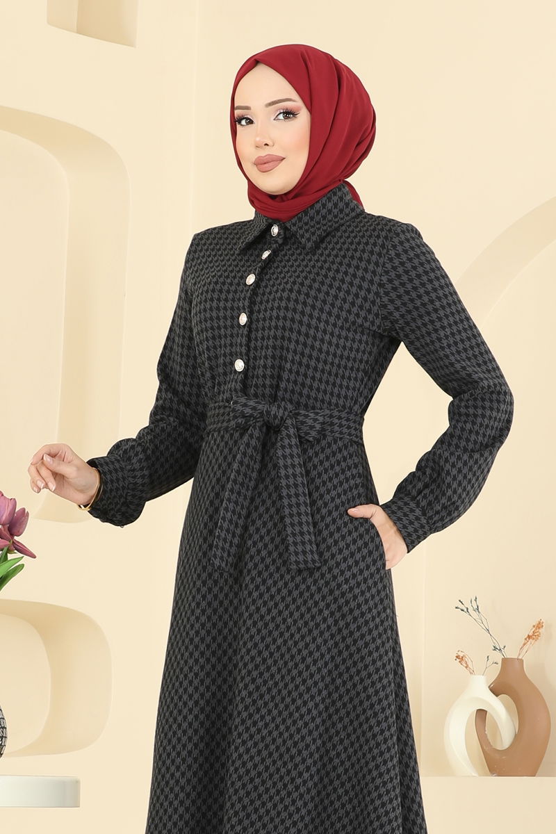Gold Düğme Detaylı Elbise 4129PM271-MS Antrasit