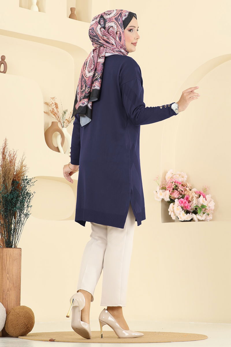 Lacivert Altın Düğmeli Hırka