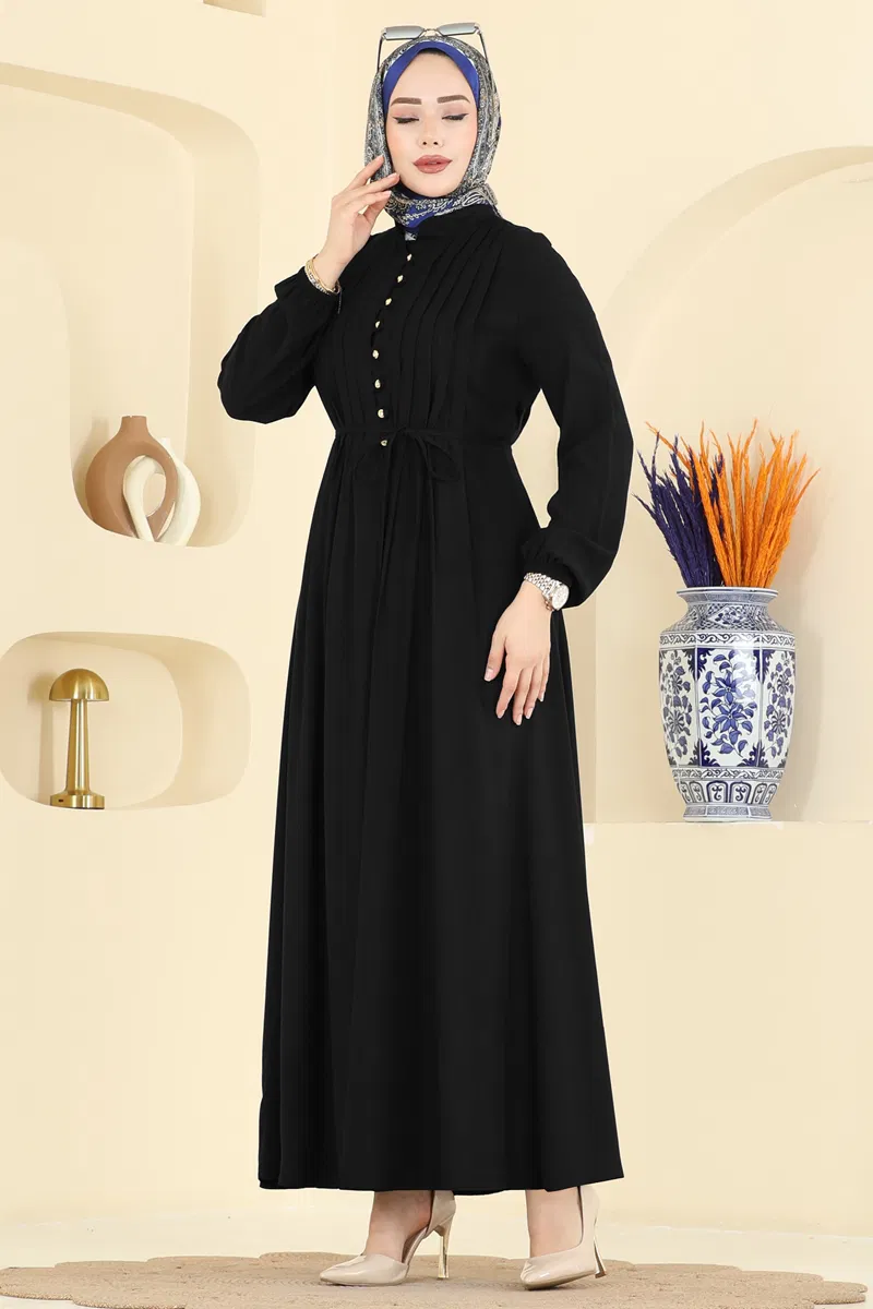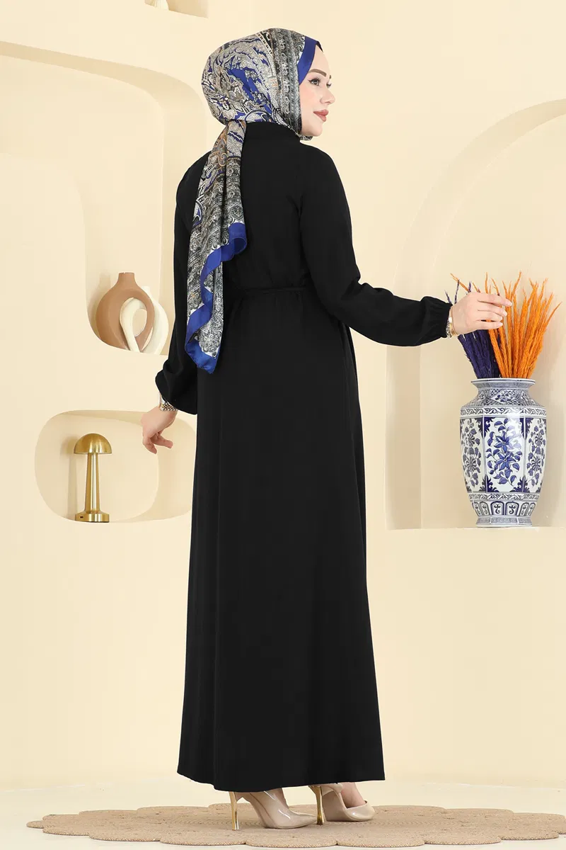 Ürün Detayları :Moda bilincine sahip tesettürlü kadınlar için tasarlanmıştır. Elbise yarı yüksek yakaya sahiptir ve önce yarım buton detayı bulunmaktadır. Astar kullanılmamıştır. Ayrıca, ayarlanabilir bir bağlama ipiyle gelmektedir ve kullanımı opsiyoneldir. Kol uçları lastiklidir. Fotoğraf çekimleri sırasında ışık farklılıklarından dolayı renk tonlarında farklılık gözlemlenebilir.