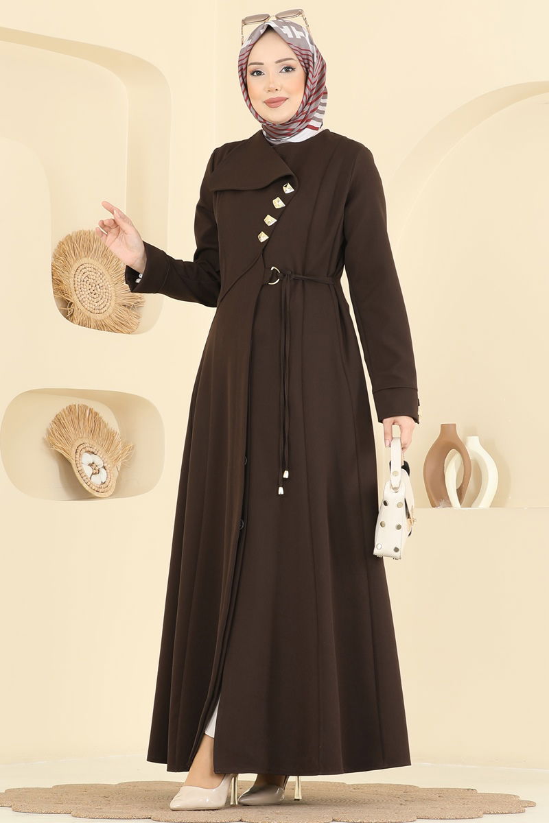 Gold Düğmeli Dabıl Ferace 2791SL432-MS Koyu Kahve