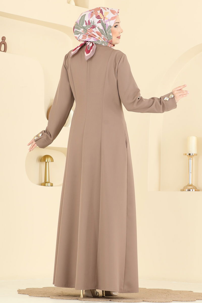 Gold Düğmeli Dabıl Ferace 2791SL432-MS Koyu Vizyon