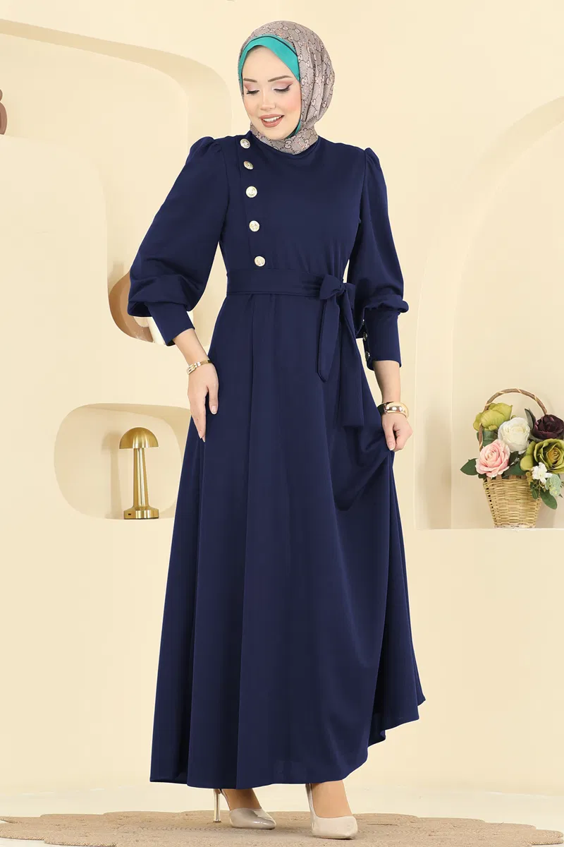 Ürün Detayları: En yeni tesettür moda ürünüdür. Yarım Hakim yaka özelliğine sahiptir. Astarı bulunmamaktadır. Arka kısmı fermuar kapamalıdır. Bel kısmı dikişli olup, düğmeler dekoratif amaçlıdır. Elbise ile birlikte verilen kemer, isteğe bağlı olarak çıkartılabilir. Kol manşetleri işlevsel düğmelerle donatılmıştır.Ürün fotoğrafları çekim teknikleri nedeniyle renk farklılıkları gösterebilir.