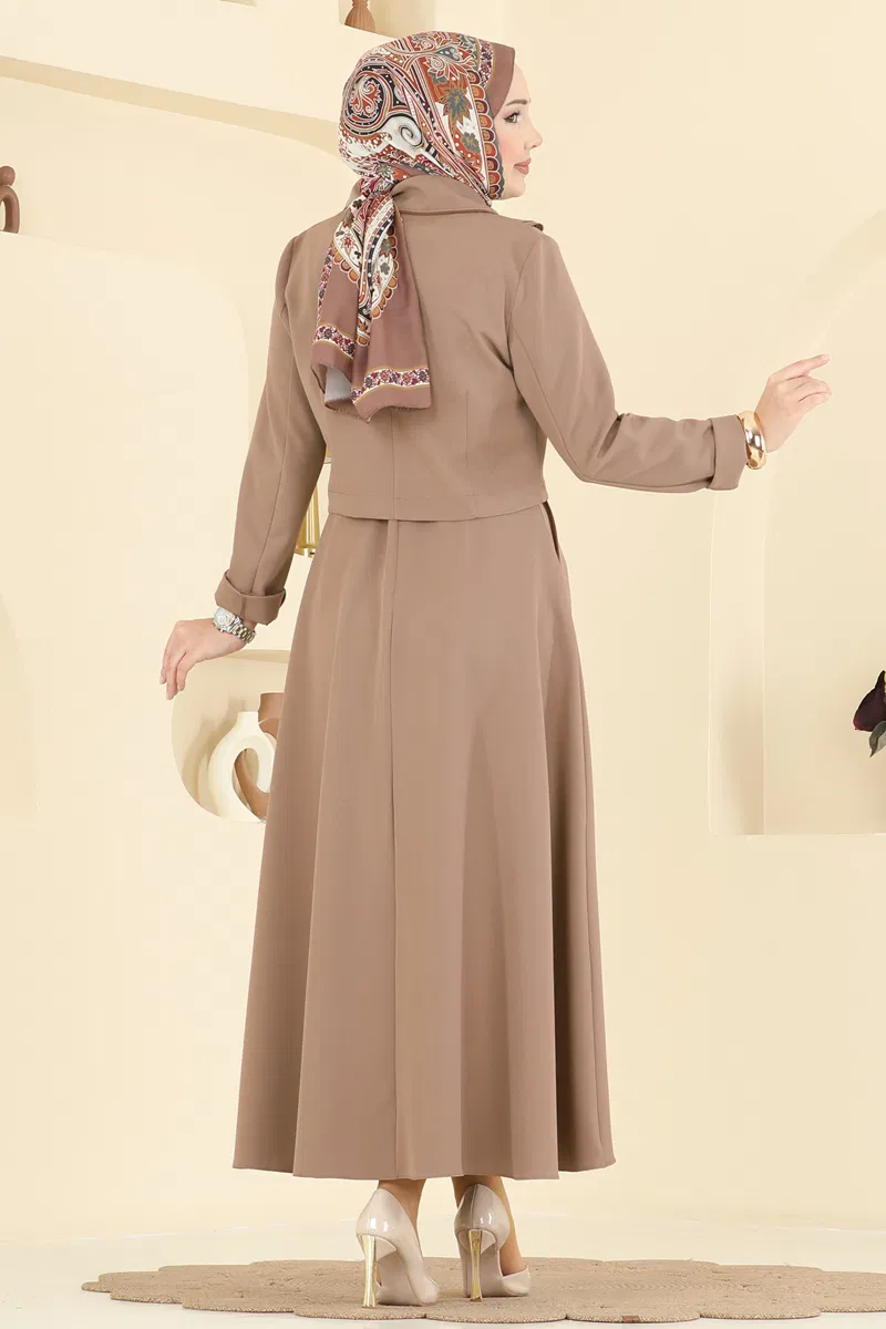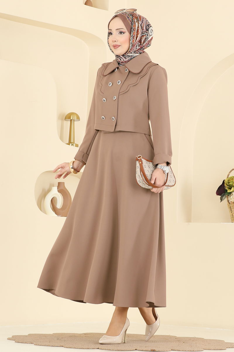 Tesettür Gömlek Yaka Double Takım - Koyu Renk Seçeneği