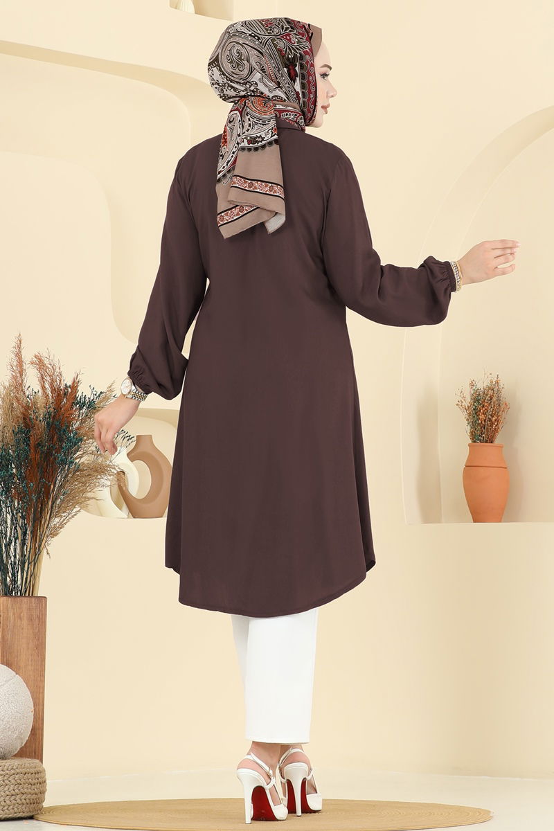 Gömlek Yaka Detaylı Tunik 2001ERK1158-MS Kahve