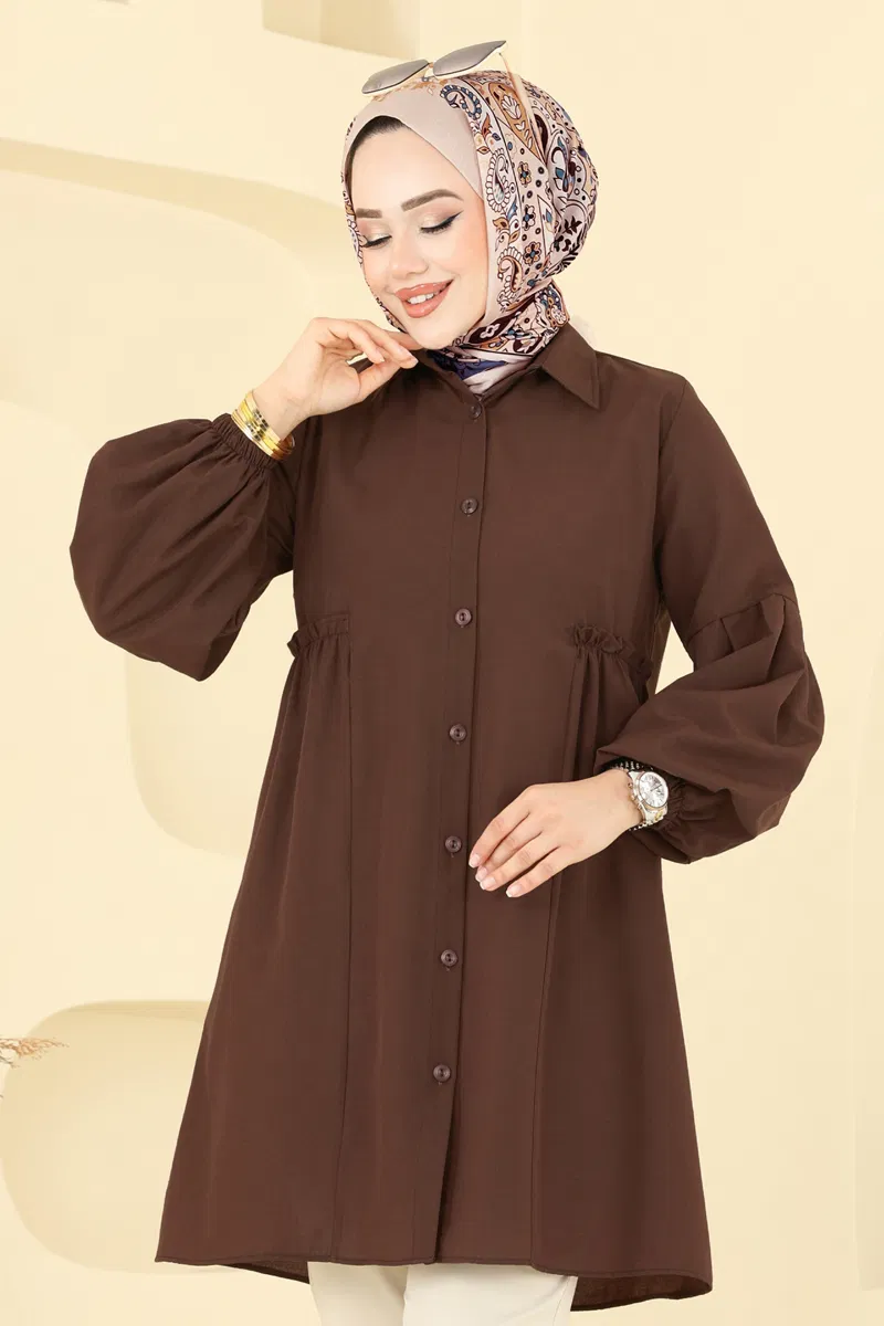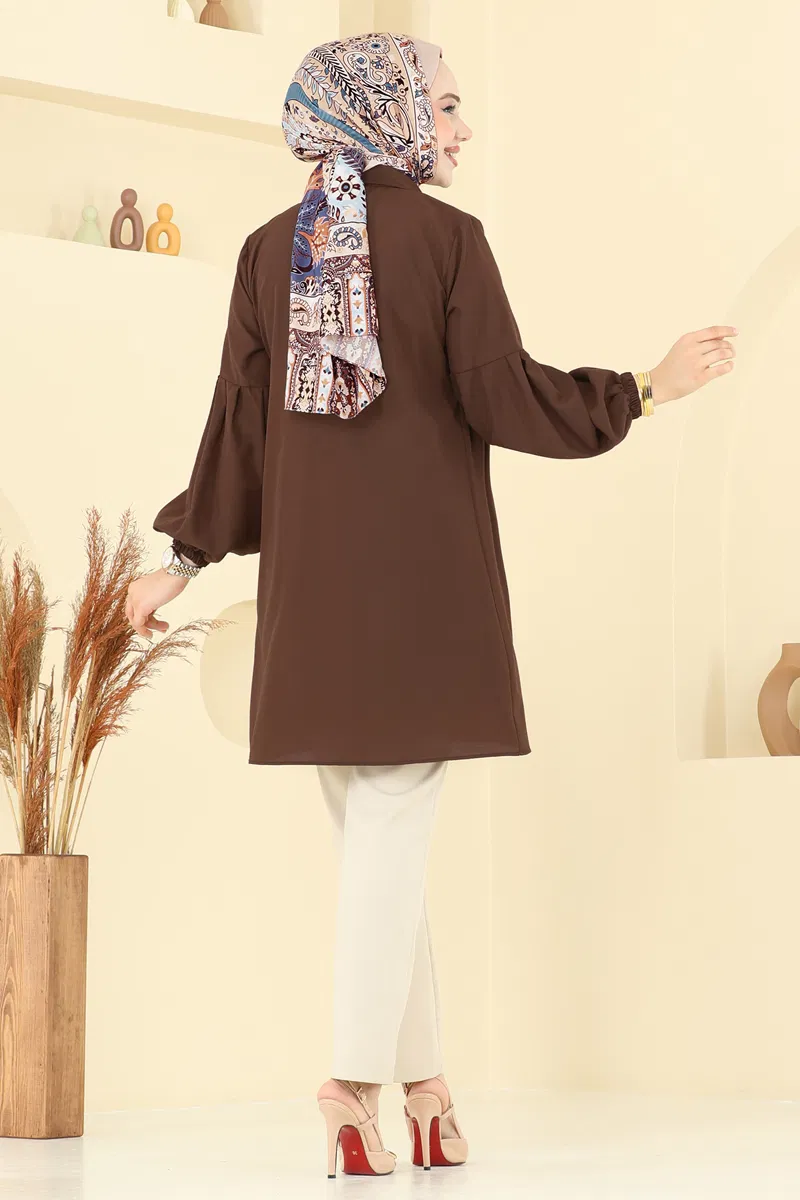 Gömlek Yakalı Tunik 3055KTR750-MS Koyu Kahve