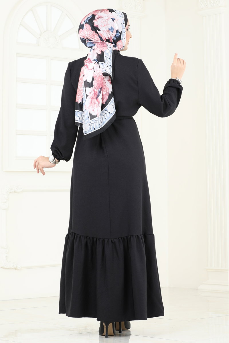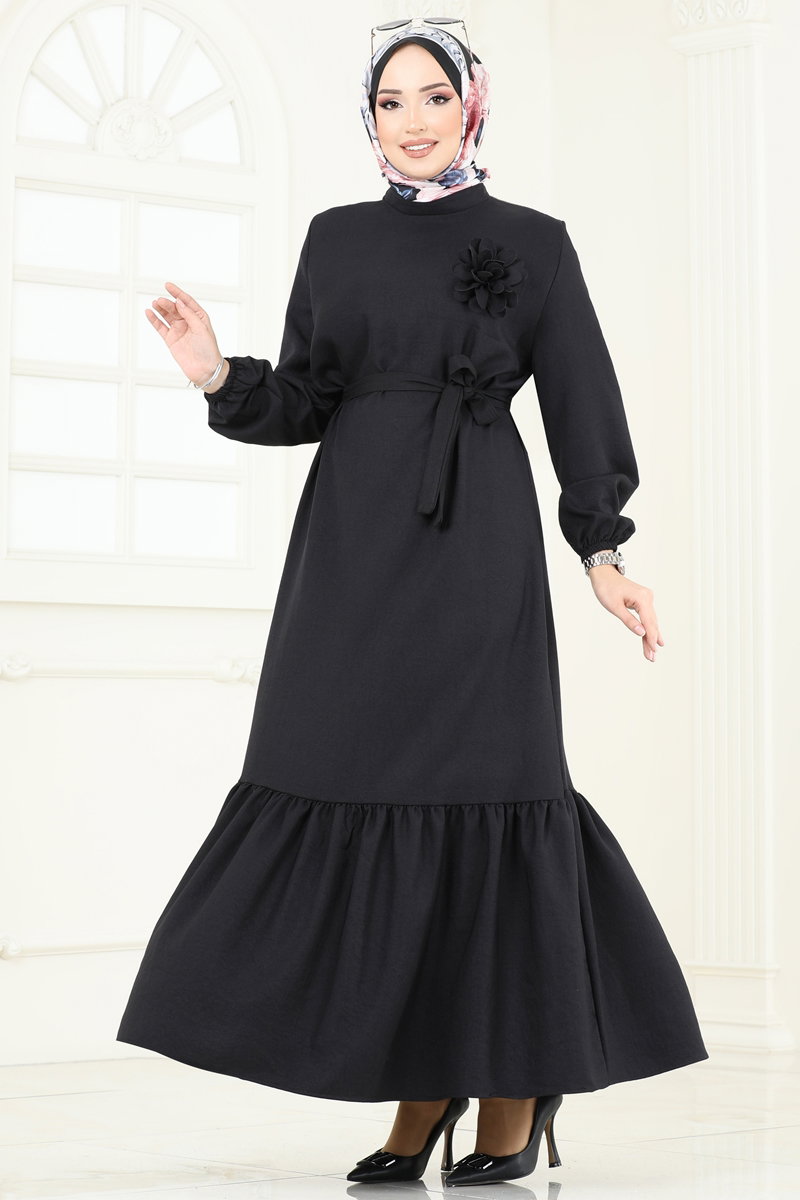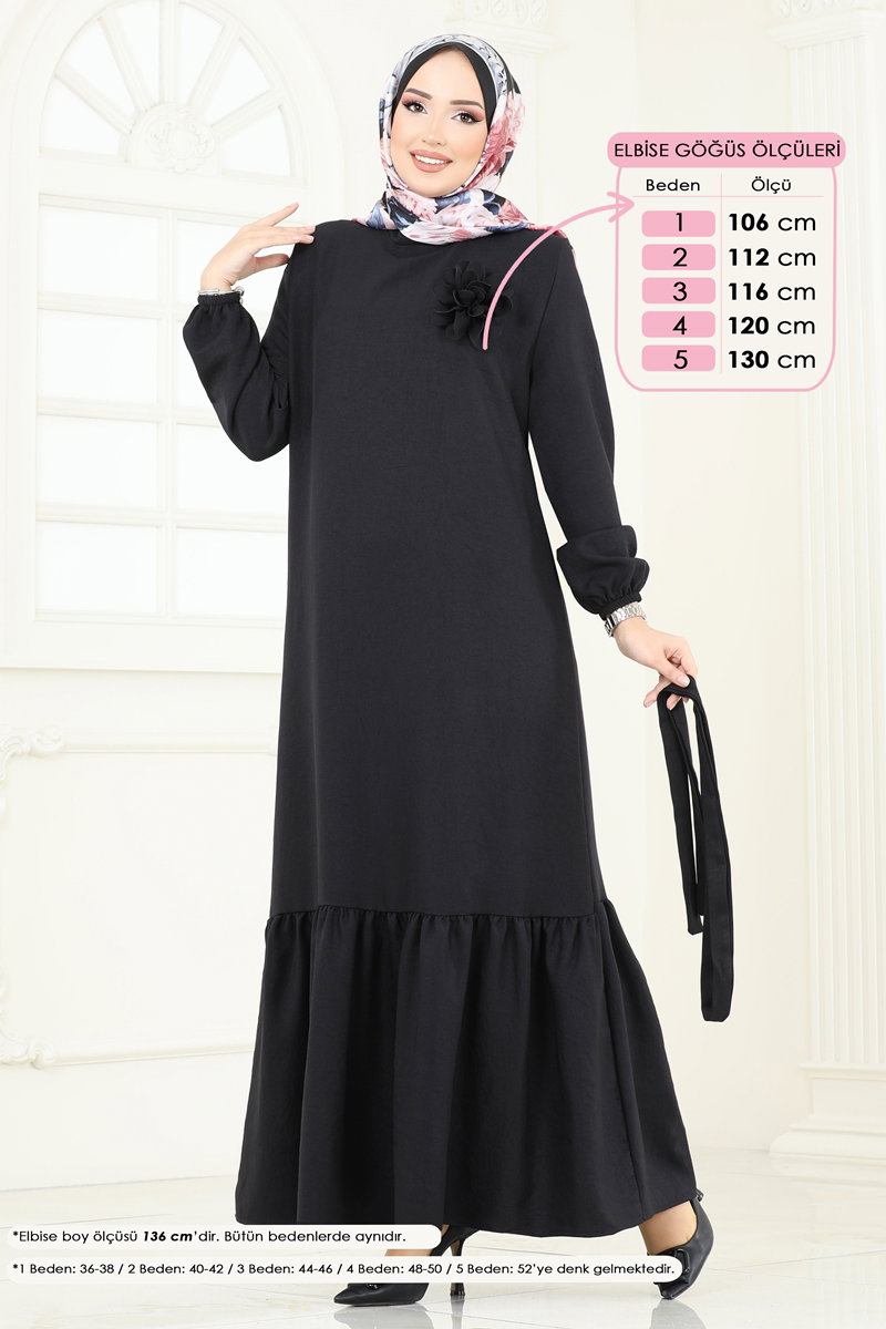 Gül Detaylı Elbise 801OZN1046-MS Siyah
