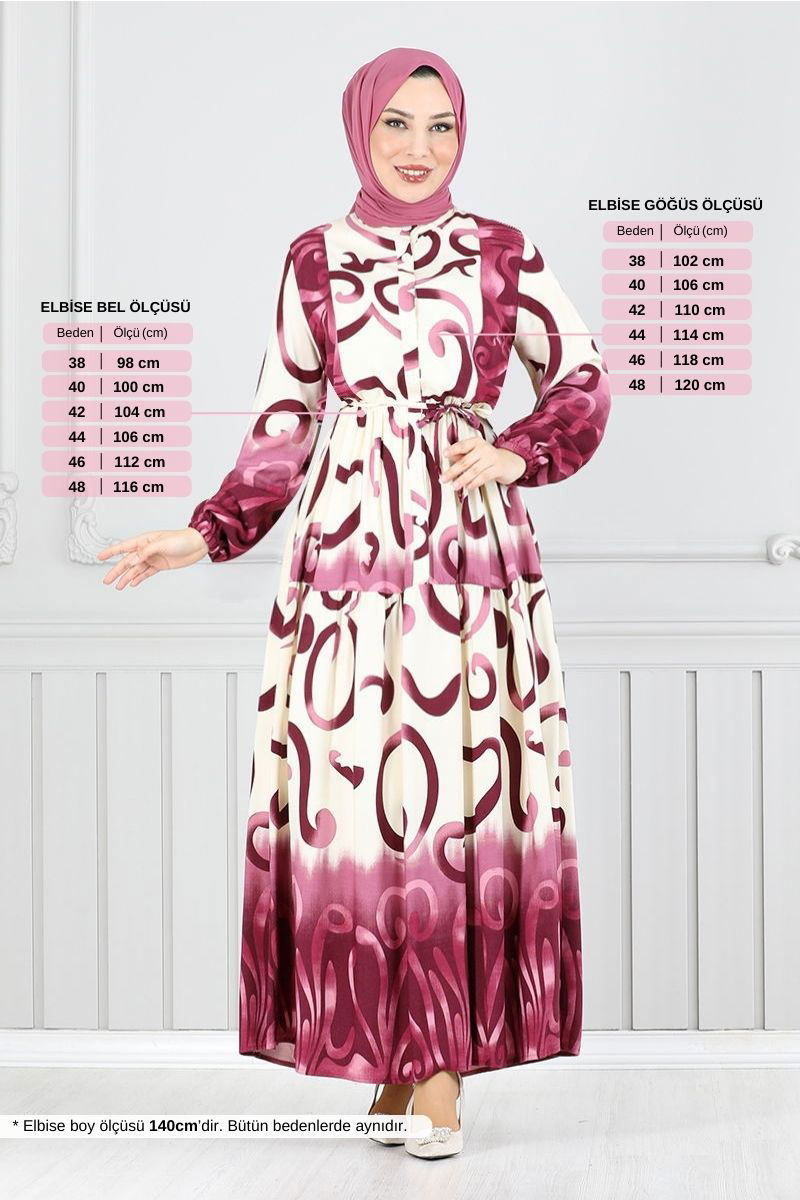 Patterned Dress with Half Buttons Dark Rose Drywall Feature: It is made of viscose fabric. It can be used in Four Seasonal seasons. Product Feature: New season hijab is a fashion product. The product is a Half-Judge collar. The product has a half button that can be used from the front. It is unlined. The belt is included in the product, it may not be used on request. The cuff is rubberized.There may be a tonal difference in the product due to concept photo shoots. Washing : Hand washing should be done. Belt Feature: The two ends of the belt are sewn to prevent the belt from fluctuating, the middle part is left empty (seamless). (The item on the model is size 38.)Weight (Kg):0.47