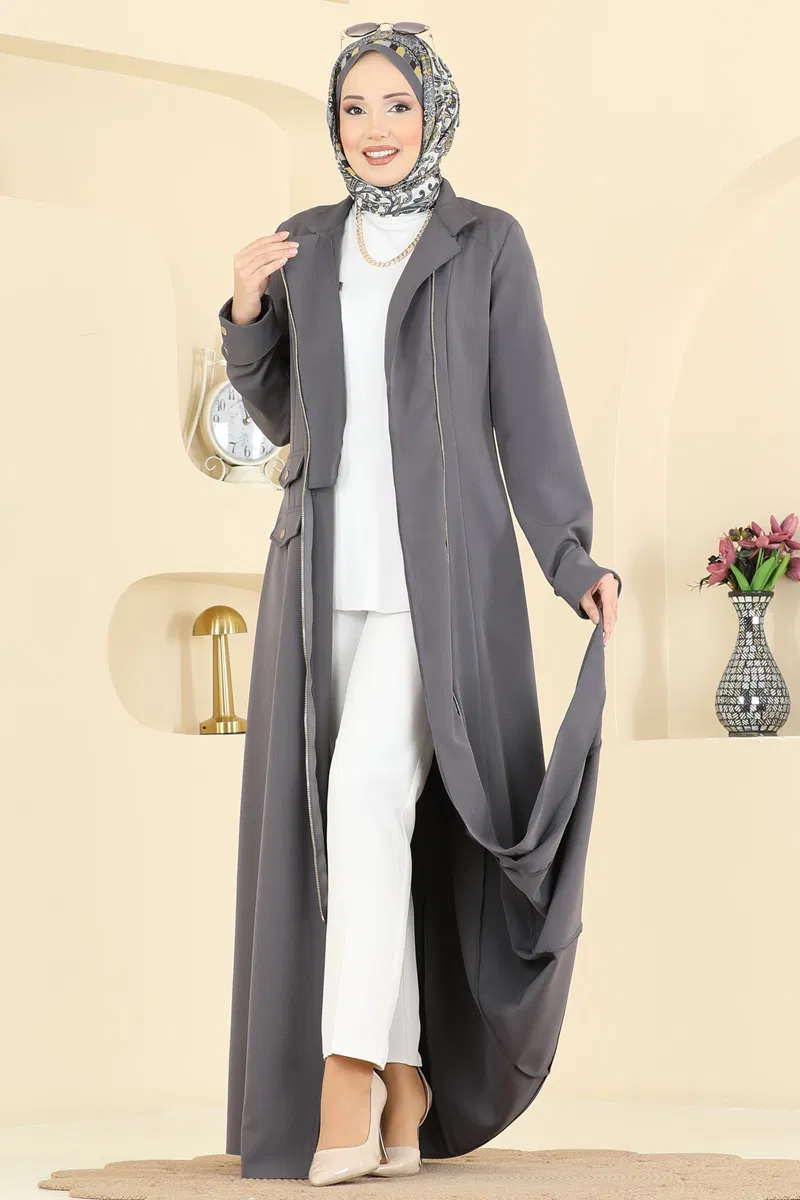Antrasit Renk Halka Fermuar Dabıl Ferace