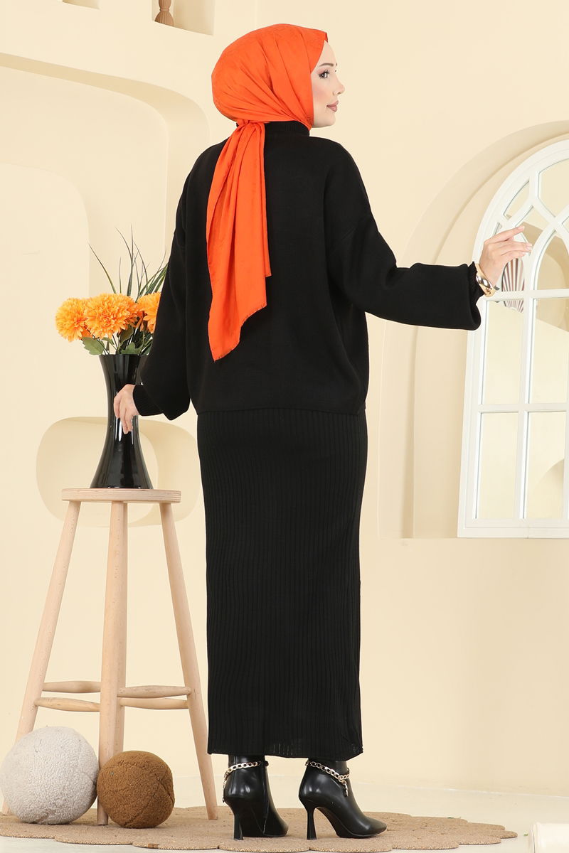Elegant and sophisticated, the Pearl-Detailed Dress Suit is specially designed for modest wear. Ideal for autumn and winter, this combination impresses with its embellished details. It is recommended to wash the product inside out and iron on the reverse to protect the embellishments. Made from knit fabric, this suit is unlined, offering a light and comfortable fit. The pearl details are carefully stitched, and the inner dress can be worn separately if desired. The tunic and the inner dress are sleeveless and available in standard sizes.