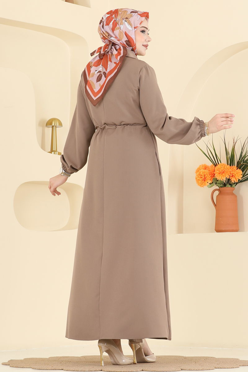 İnci Taş Düğmeli Ferace 2784SL432-MS Koyu Vizyon