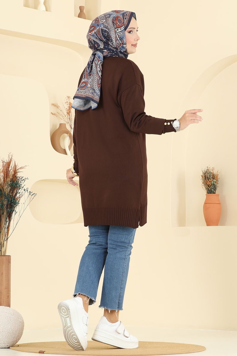 İşleme Detaylı Merserize Hırka 3260BRZ597-MS Acı Kahve
