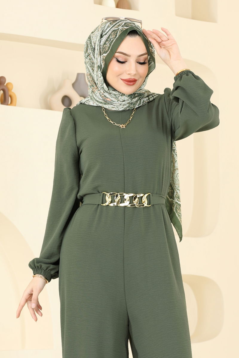 المنتج لديه ياقة دائرية. غير مبطنة. المنتج به سحاب في جزء من الخلف. يتم خياطة السلسلة على المنتج. الحزام متضمن، ،يمكن استخدامها حسب الرغبة السوار مطاطي. قد يكون هناك اختلاف في الدرجة اللونية في المنتج بسبب التقاط الصور الفوتوغرافية.