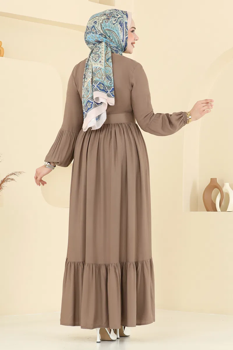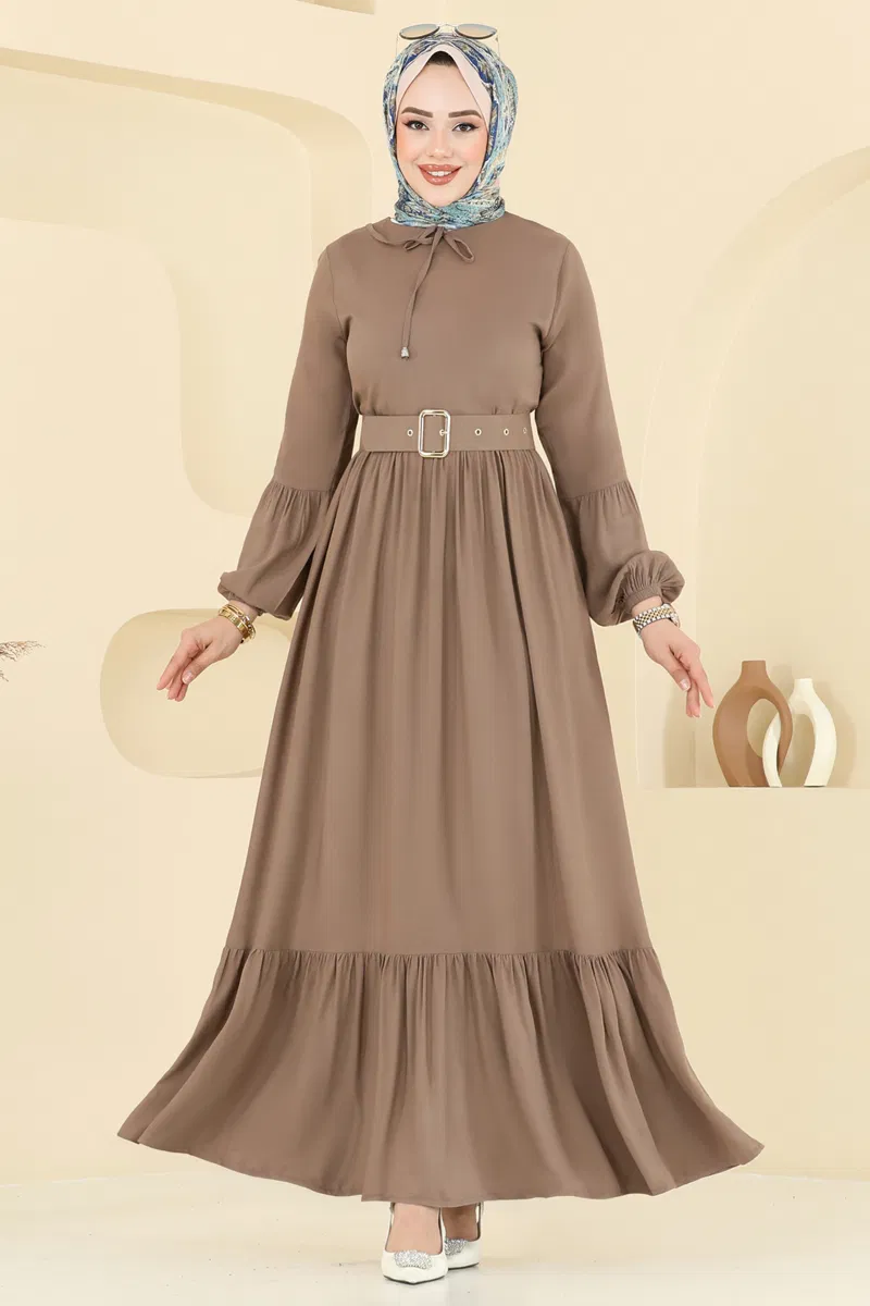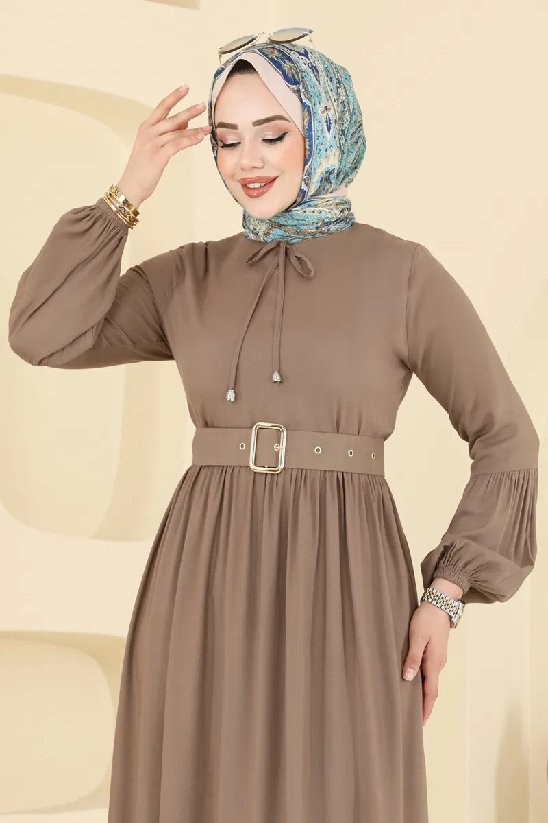 Kaplama Kemerli Elbise 7123BG354-MS Koyu Vizyon