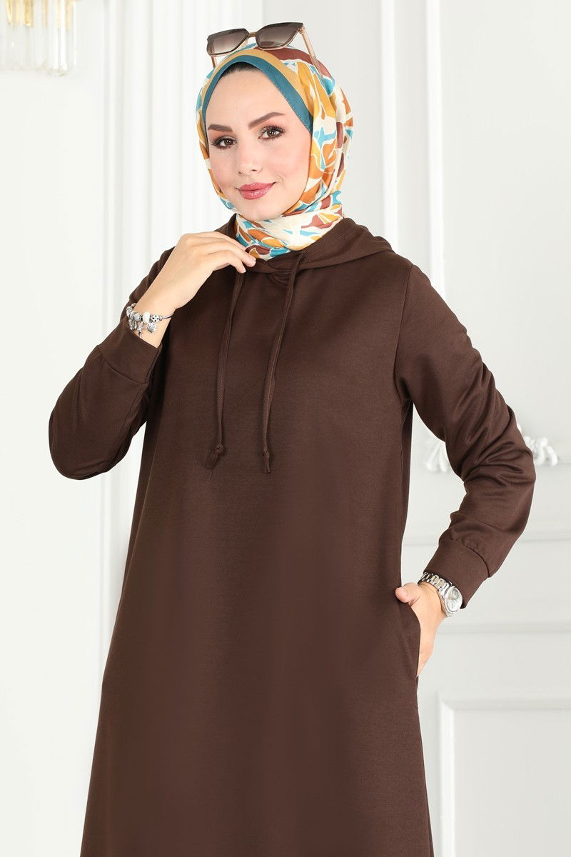 Kapşonlu Spor Elbise 5042UZ662-MS Kahve
