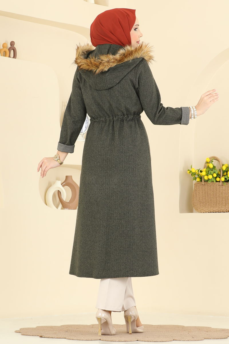 Kapşonu Kürklü Uzun Kap 24026UKB139-MS Haki
