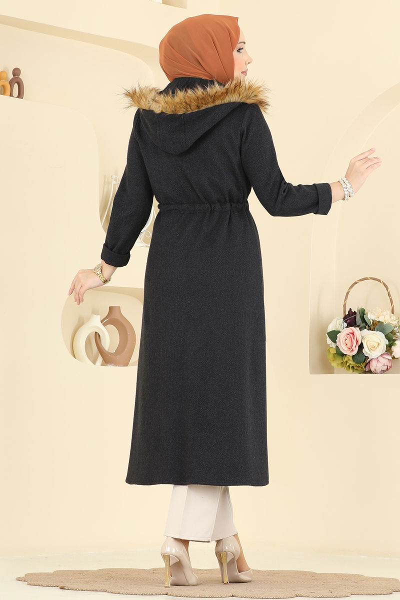 Kapşonu Kürklü Uzun Kap 24026UKB139-MS Siyah