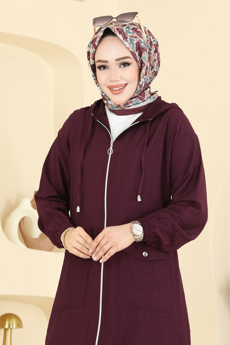 Pantolon ve Hırkalı Kapüşonlu Takım - Mürdüm Rengi