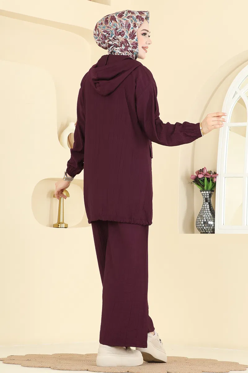 Kapüşon Detaylı Pantolonlu Takım 3258HBS856-MS Mürdüm