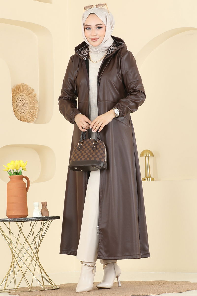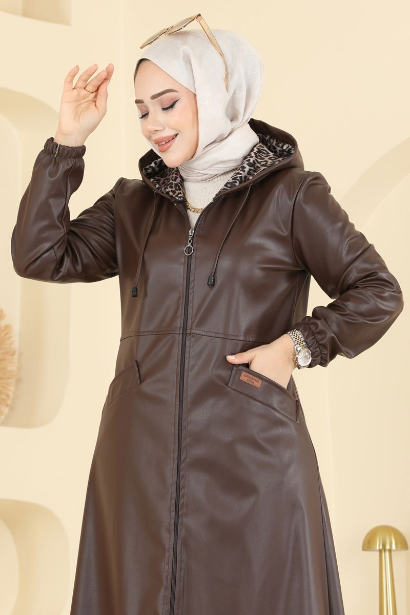 Kapüşonu Leopar Desenli Kap 1407ORG1169-MS Kahve