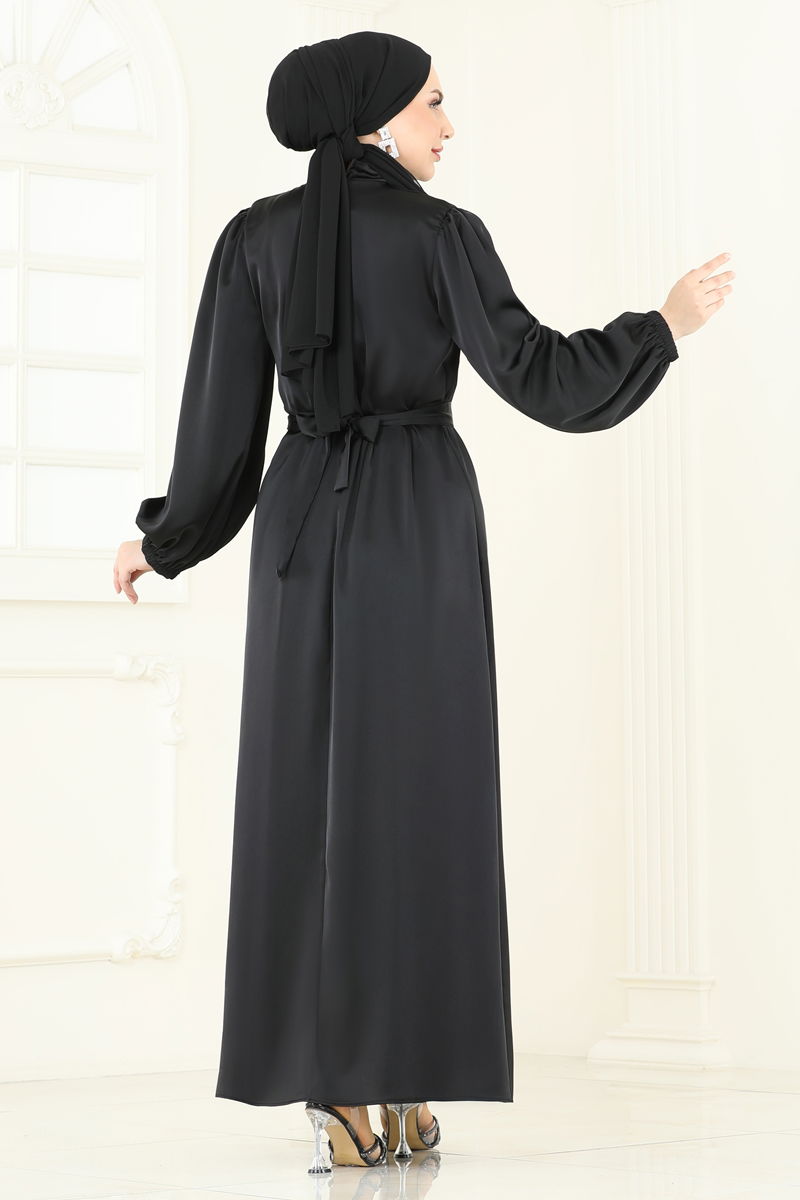 Kemeri Güllü Saten Abiye 5674EDF311-MS Siyah