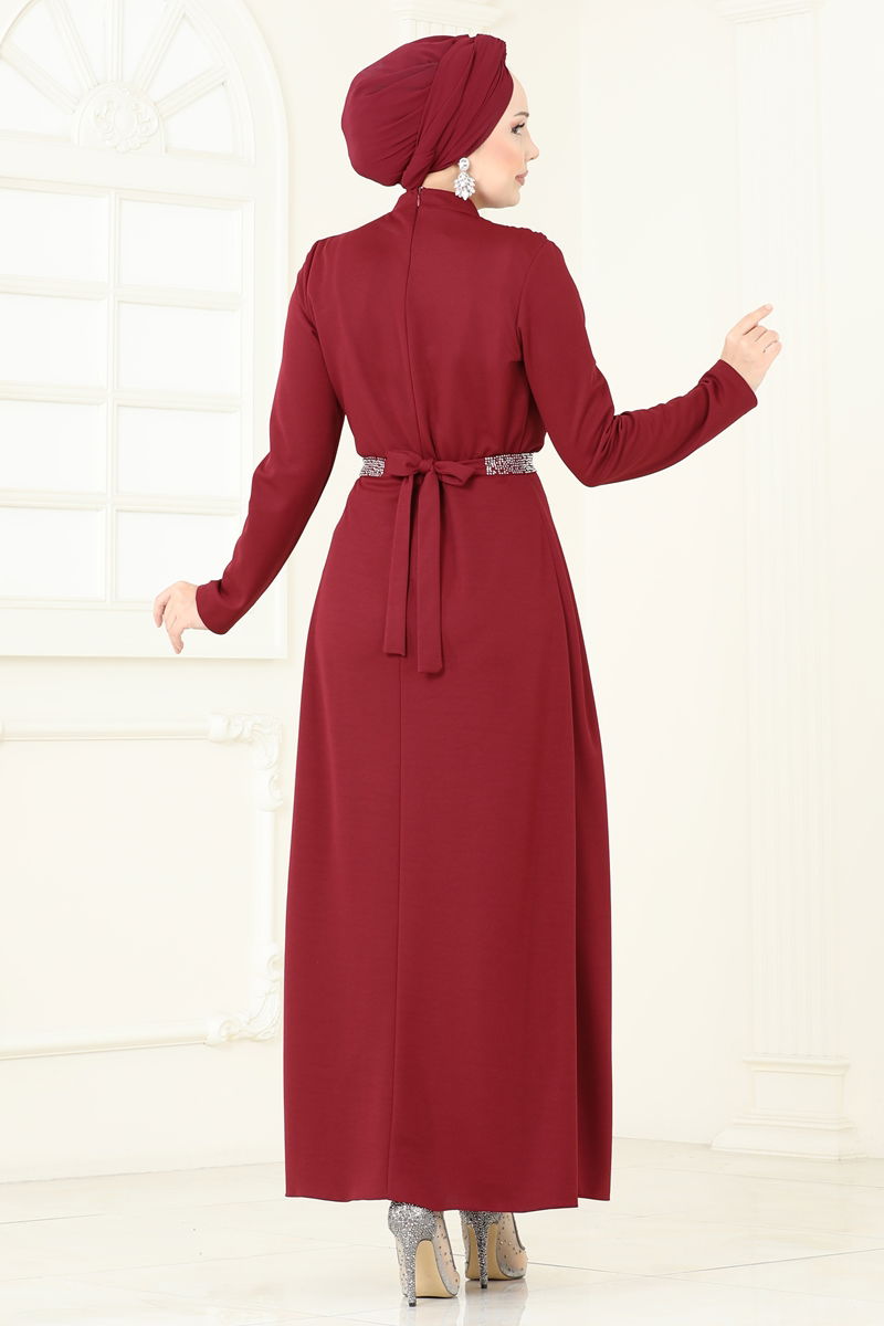 Kemeri Taşlı Abiye Elbise 5729EDF311-MS Bordo