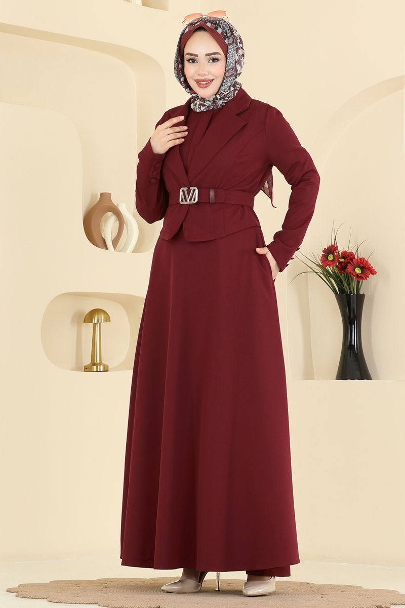 Bordo Renkli Tokalı Dabıl Kumaş Takım