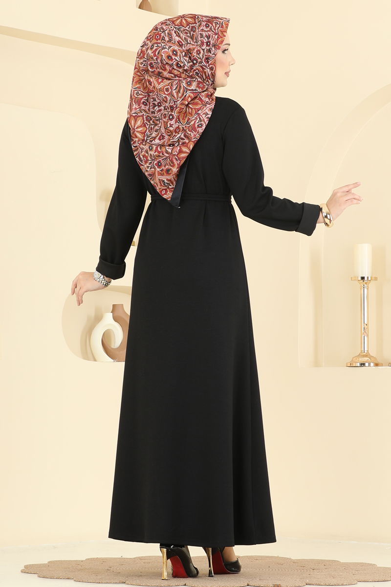 Kemeri Tokalı Modal Elbise 2637MSZ1172-MS Siyah