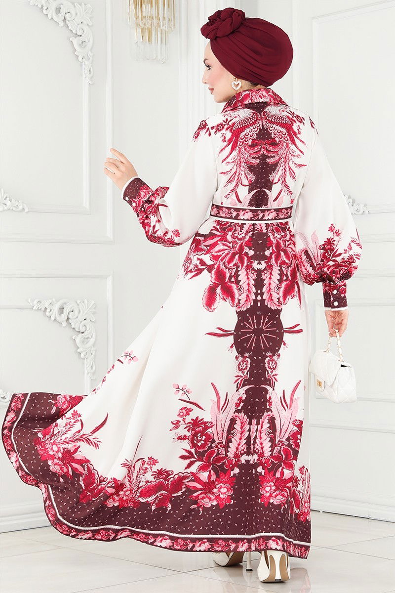 Elbise Özellikleri: Tesettür giyim tarzına uygun, yeni sezon tasarımıdır. Astarsızdır. Gömlek tipi yaka detayına sahiptir. Ön kısmı düğmeli olup, düğmeler aktif kullanılabilir. Kemer aksesuarı takılarak ya da çıkarılarak kullanılabilir. Kol manşetleri düğmelidir. Çekimlerden kaynaklı olarak renkte küçük değişiklikler olabilir.