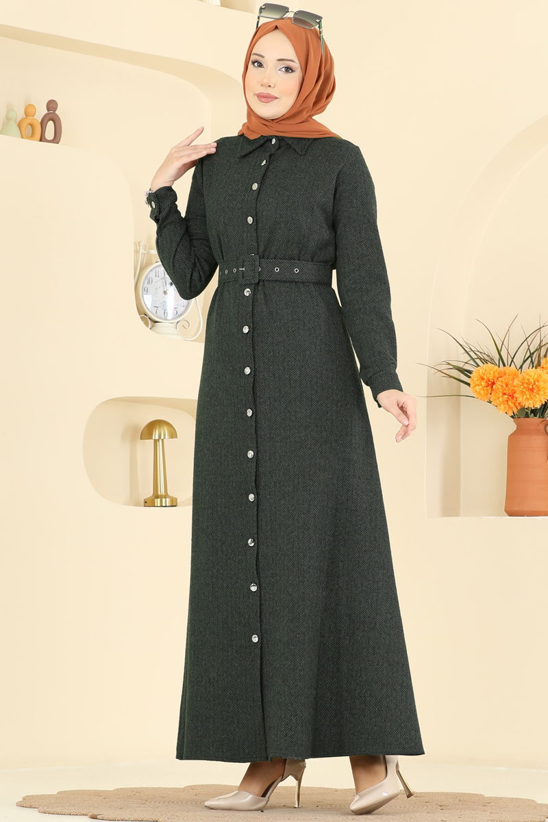 Kemerli Gömlek Yaka Elbise 24023UKB139-MS Haki